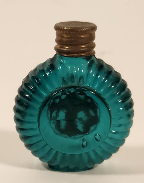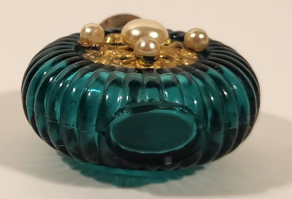 Antique Czech Jeweled Ornate Gold Design with Pearls Green Ribbed Glass Miniature 2" Perfume Bottle