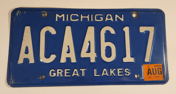 2007 Michigan Great Lakes Blue with White Letters Embossed Metal Vehicle License Plate Tag ACA4617