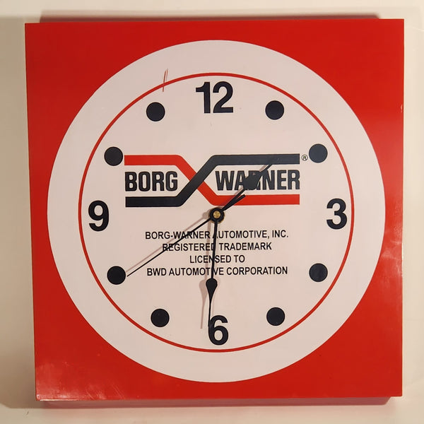 BWD Automotive Corporation Borg-Warner Automotive Red White Black 12 1/4" x 12 1/4" Plastic Advertising Wall Clock