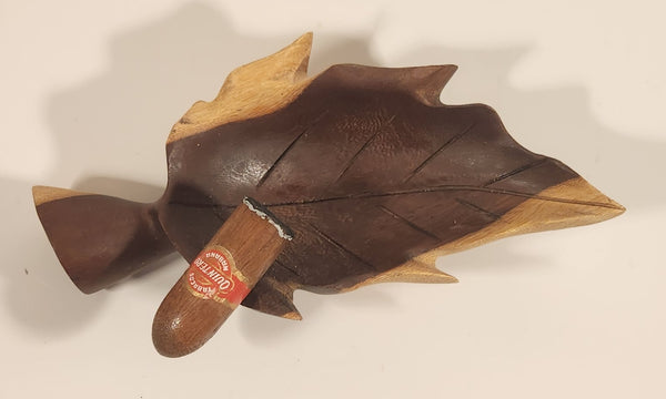 Very Rare Quintero Tabacos Habana Cigars 3D Hand Crafted Leaf Shaped Wooden Ash Tray with Faux Burnt Cigar