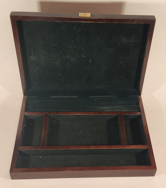 Vintage Dark Green Felt Lined Wood Jewelry Box