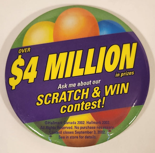 2002 Hallmark Over $4 Million In Prizes Ask Me About Our Scratch & Win Contest! 3" Round Button Pin