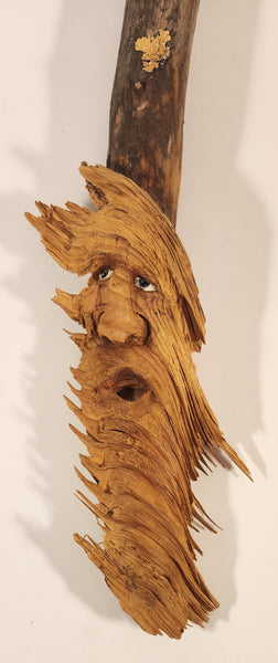 1997 Peter Peersman Whimsical Man's Face 13 3/4" Carved Wood Stick Branch
