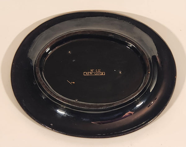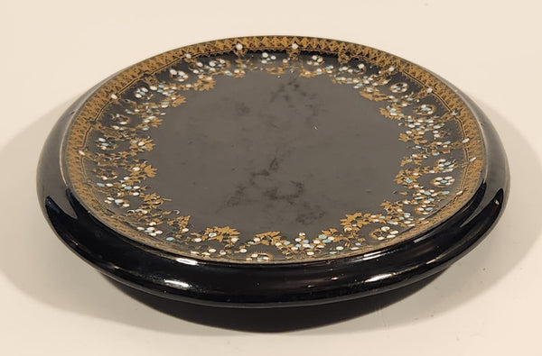 Antique 1800s Victorian Ornate Gold Pattern with Hand Painted Blue and White Dots No. G11 Black Oval 6 3/4" x 8 1/2" Papier Mache Mirror Plaque