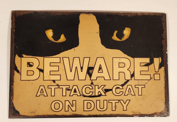 Beware Attack Cat On Duty 7 1/4" x 10 3/4" Heavy Metal Sign
