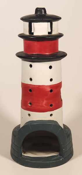 Red and White Striped Lighthouse 7 3/4" Ceramic Candle Holder Lamp Light