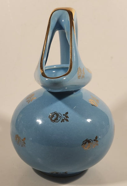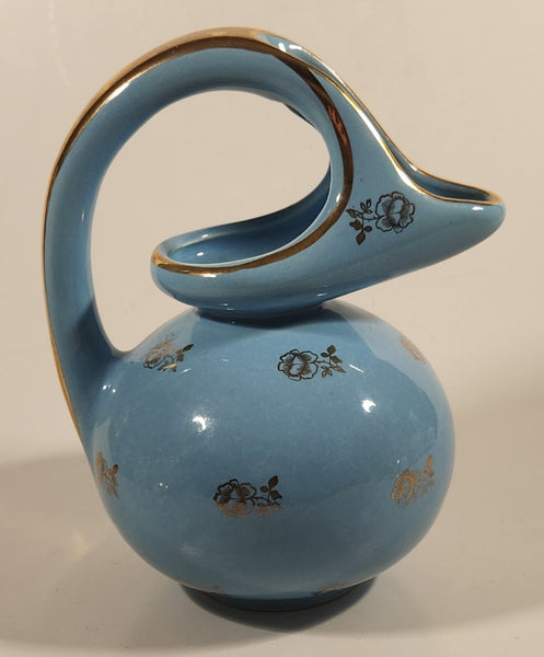 Vintage Guaranteed 22K Gold Made in U.S.A. Blue with Gold Floral Decor Pitcher Jug