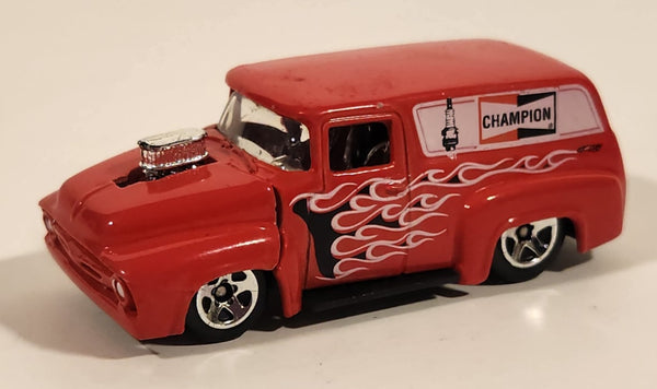 2010 Hot Wheels HW Performance 1956 Ford Truck Champion Spark Plugs Red Die Cast Toy Car Hot Rod Vehicle