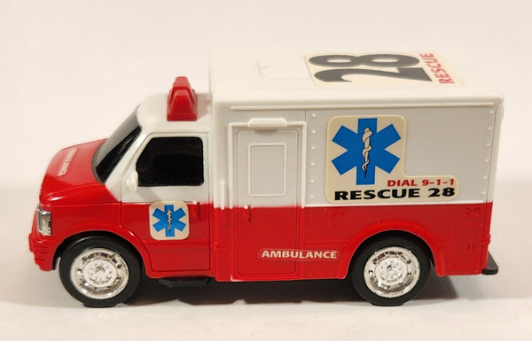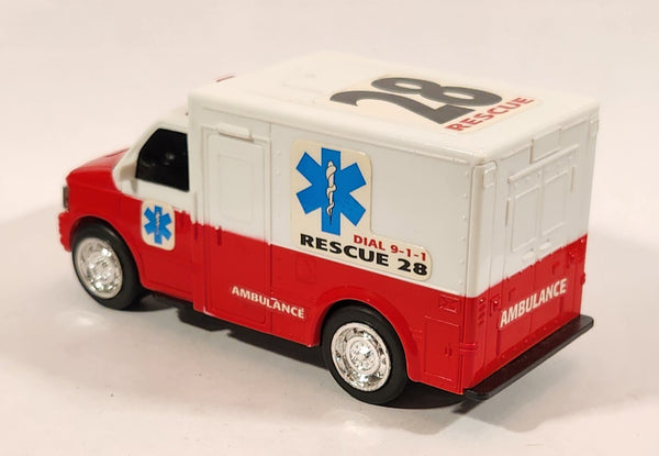 Ambulance #28 Rescue Red and White Plastic Push and Go Die Cast Toy Car Vehicle