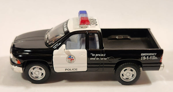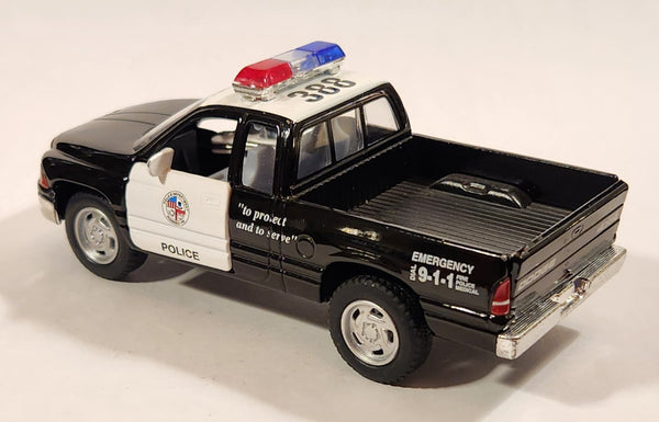 Kinsmart 2014 Dodge Ram 1500 Police #388 Pickup Truck Black and White Pull Back 1/44 Scale Die Cast Toy Car Vehicle with Opening Doors and Tail Gate