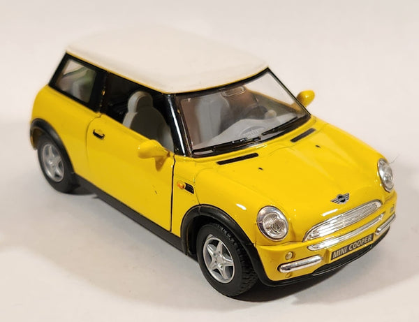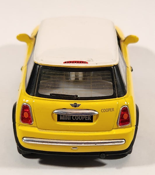 Kinsmart New Mini Cooper Yellow with White Roof Pull Back 1/28 Scale Die Cast Toy Car Vehicle with Opening Doors