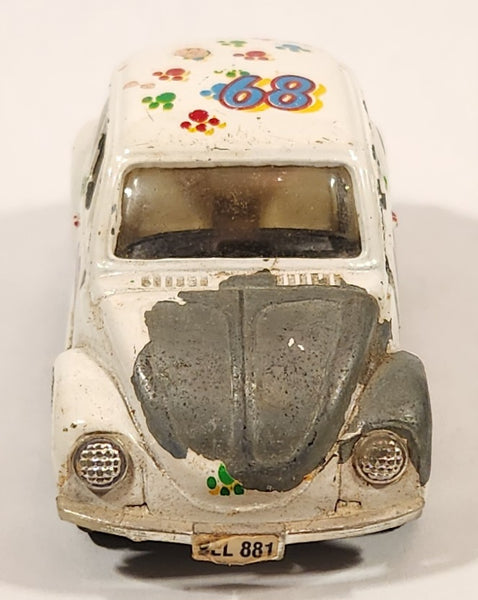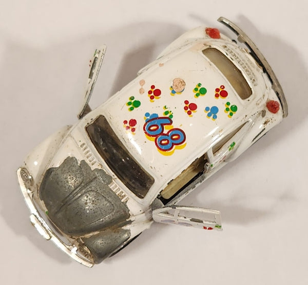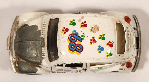 Volkswagen Beetle Bug #68 White with Paw Prints Pull Back Die Cast Toy Car Vehicle with Opening Doors