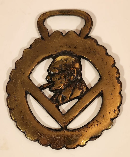 Antique Winston Churchill Themed Horse Brass Medallion 2 1/2" x 3 1/8"