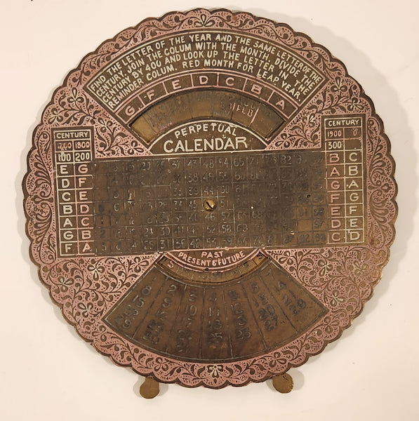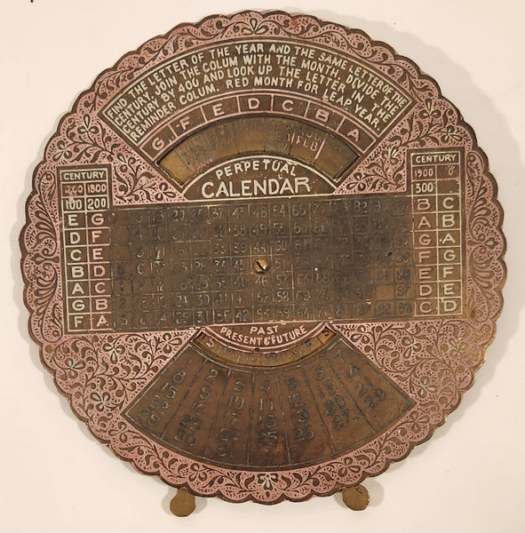 Vintage Brass Metal Perpetual Rotating Disc Calendar Made in India