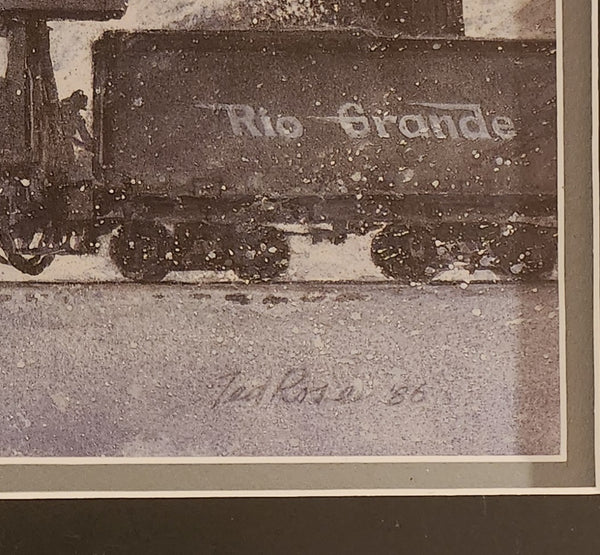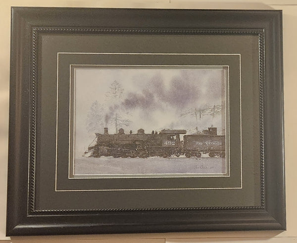 1986 Ted Rose 492 Rio Grande Steam Engine Train Locomotive 21" x 24 1/2" Framed Art Print