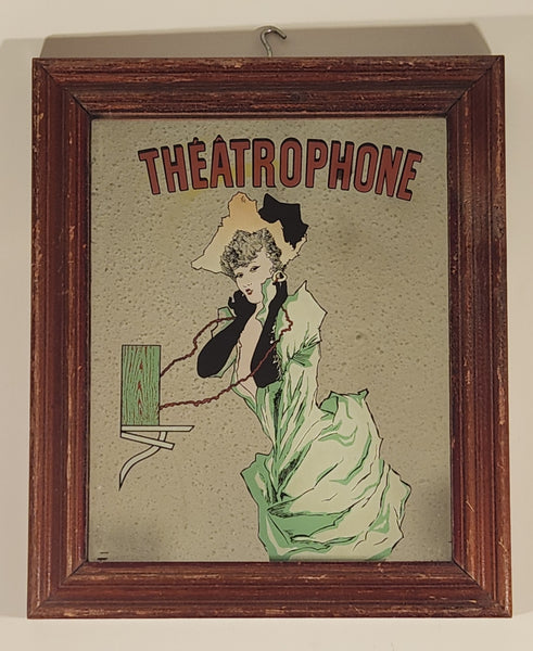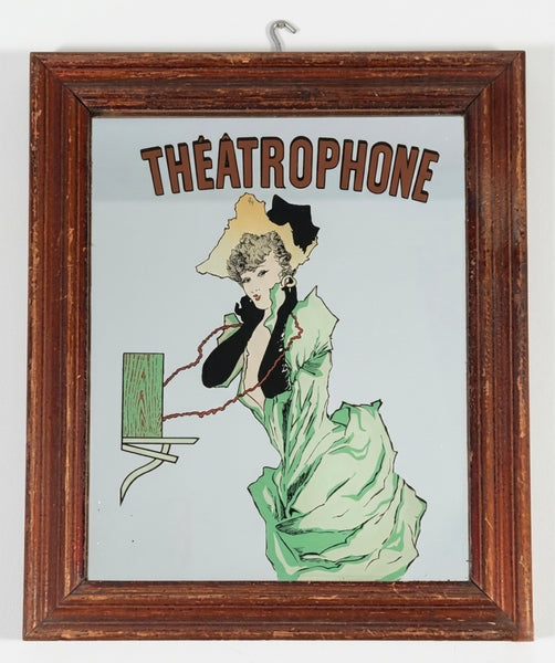 Antique 1890s Jules Chéret Theatrophone 10 1/2" x 12 1/2" Wood Frame Mirror