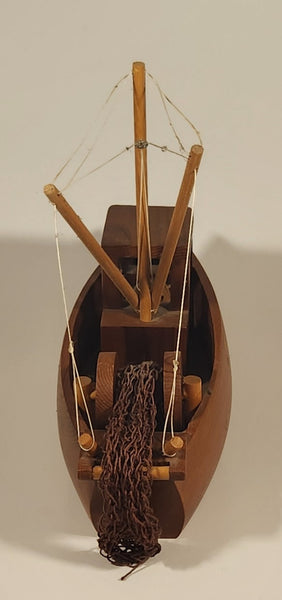Rare Fishing Trawler with Roll Out Net 10" Teak Wooden Boat Model