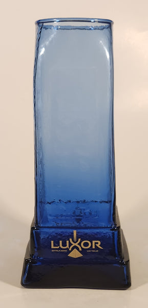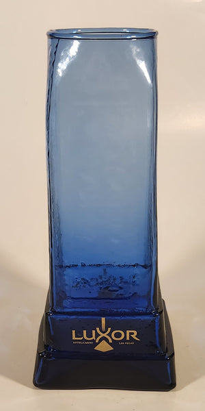 Luxor Hotel Casino Las Vegas Embossed Hieroglyphs Pillars Cobalt Blue 9" Glass Cup