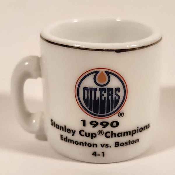NHL Stanley Cup Crazy Mini Mug Edmonton Oilers 1990 Champs With Opponent & ScoreEdmonton Oilers vs. Boston Bruins4 -11990 Stanley Cup ChampionsExcellent condition. No chips or cracks. As seen in photos. View photos.Height: Approx. 1 1/4"Weight: 23g