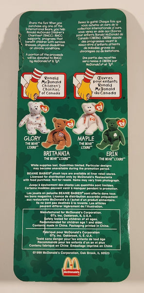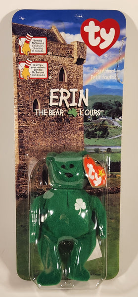 1999 McDonald's Ty Beanie Babies Erin The Bear Green 5" Tall Plush Stuffed Animal Toy New in Package