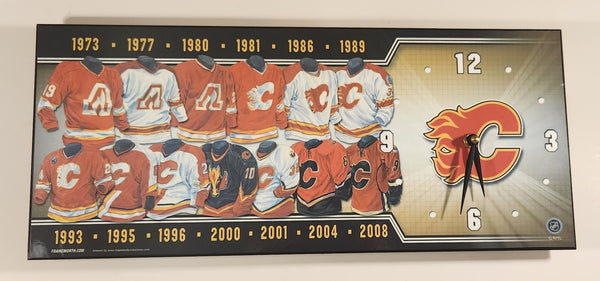 Frame Worth NHL Atlanta Flames Calgary Flames 1973 to 2008 Jersey and Logo History 7" x 16" Wood Plaque Wall Clock