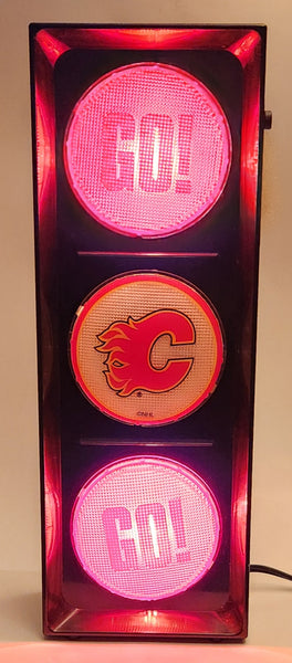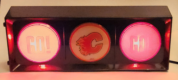 NHL Calgary Flames Ice Hockey Team Go Flames Go Light Up 6" x 16" Plastic Wall Traffic Light Sign