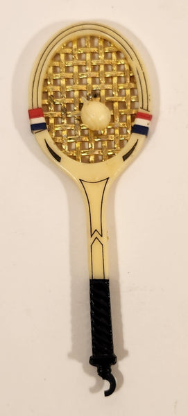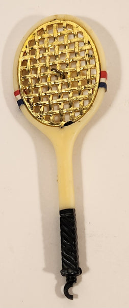 Vintage Luca Razza Tennis Racket with Ball Attached Miniature 4 3/4" Plastic Toy Pendant Made in Hong Kong
