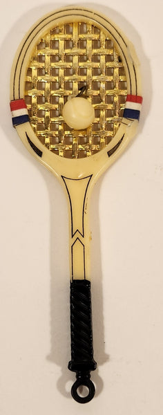Vintage Luca Razza Tennis Racket with Ball Attached Miniature 4 3/4" Plastic Toy Pendant Made in Hong Kong