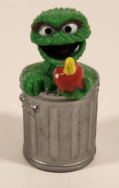 1988 Applause Muppets Sesame Street Oscar The Grouch in Trash Garbage Can Holding Apple 2 1/2" PVC Toy Figure
