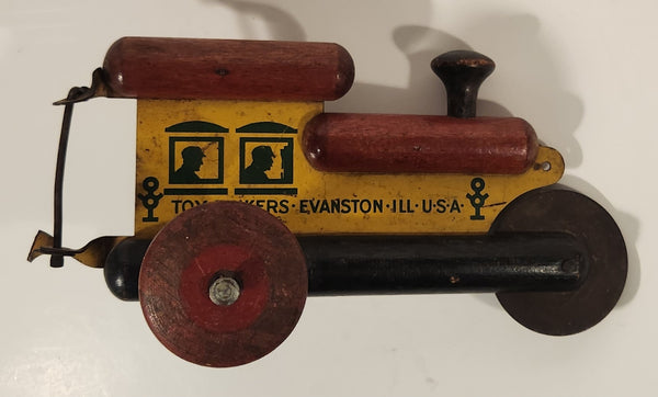 Antique 1930s Toy Tinkers Evanston Illinois USA Choo Choo Train 7 3/8" Tin and Wood Toy