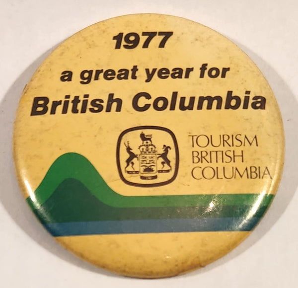 1977 Tourism British Columbia A Great Year For British Columbia 2 1/4" Round Button Pin