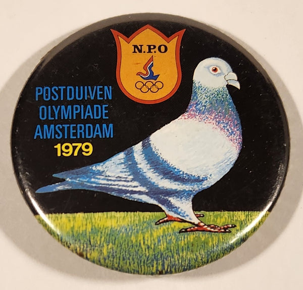 1979 N.P.O. Postduiven Olympiade Amsterdam Pigeon 2 1/4" Round Button Pin