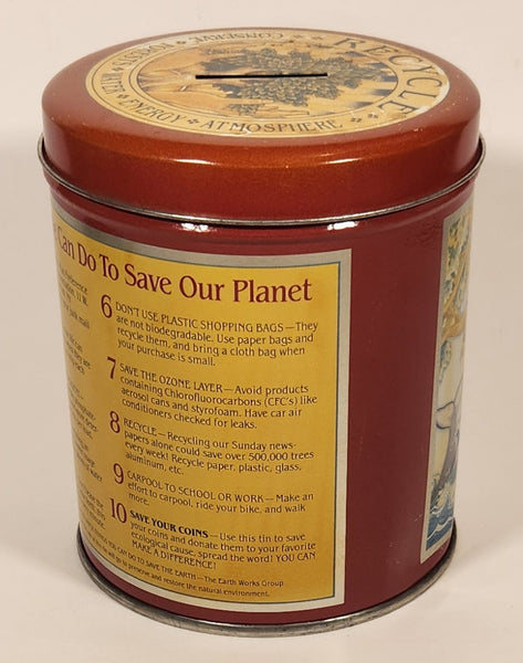 1990 Judith Ann Griffith Sunrise Publications 10 Thinks We Can Do To Save Our Planet 5" Tall Tin Metal Coin Bank