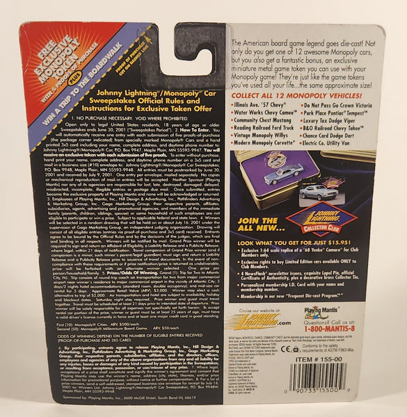 2000 RC2 Playing Mantis Johnny Lightning Monopoly 1933 Willy's Cream and Black Die Cast Toy Car Vehicle with Bonus Game Token New in Package