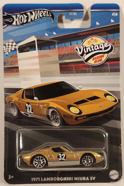 2024 Hot Wheels Vintage Racing Club 1971 Lamborghini Miura SV Gold Die Cast Toy Car Vehicle New in Package