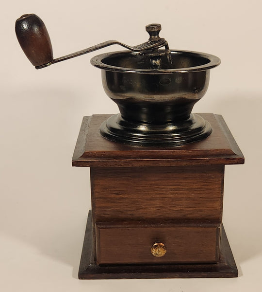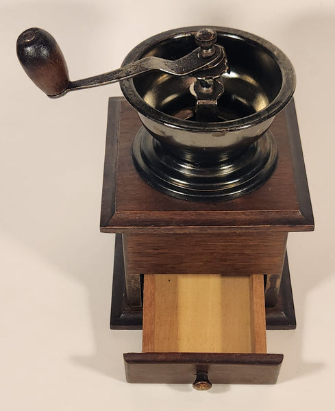French Style Wood and Dark Metal Coffee Grinder Mill