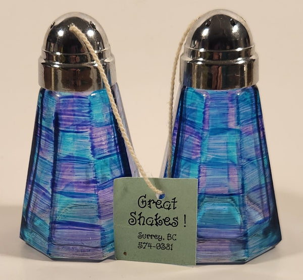 Great Shakes Blue and Purple Glass Salt and Pepper Shaker Set