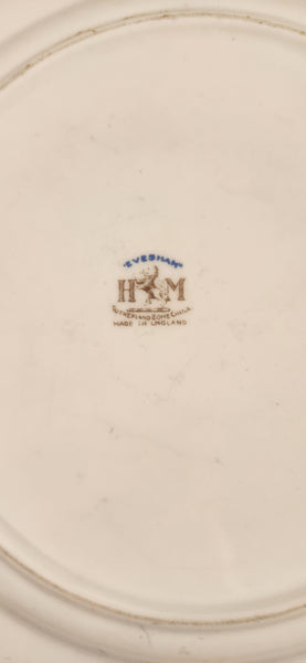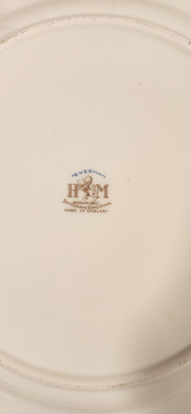 Antique c. 1947 H M Sutherland Bone China Evesham Purple and Pink Flowers Blue and Gold Trimmed 10" Dinner Plate Set of 2