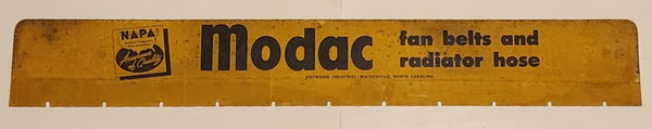 Rare Vintage NAPA Modac Fan Belts and Radiator Hose Assurance of Quality Yellow 5" x 34" Display Rack Topper Metal Sign