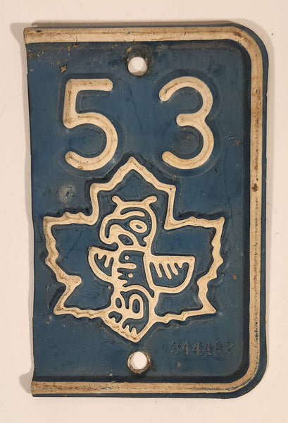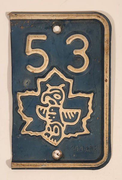 Vintage 1953 British Columbia Blue and White Metal Vehicle License Plate Tag Renewal Add-On Section