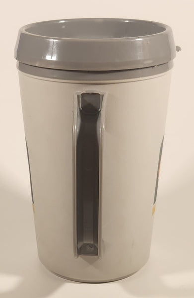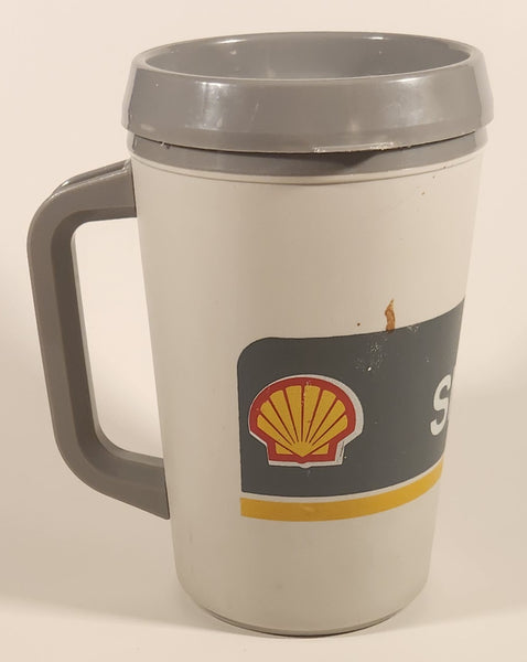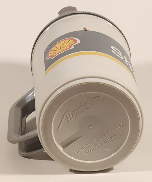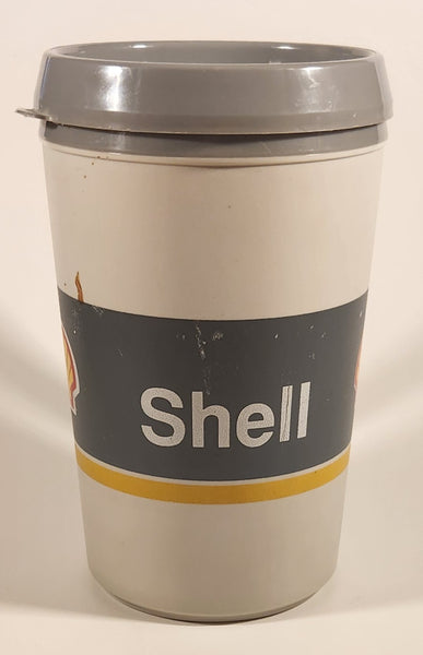 Vintage Aladdin Shell Gas Service Stations Grey 6 5/8" Black Plastic Travel Mug Cup with Lid