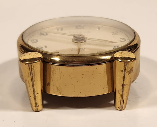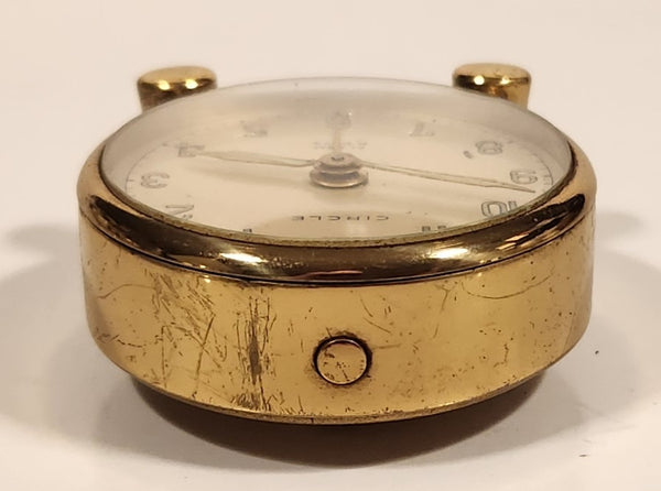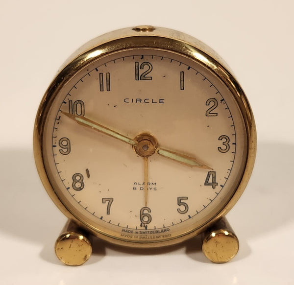 Vintage Circle 8 Days Small 1 3/4" Brass Desk Alarm Clock Made in Switzerland