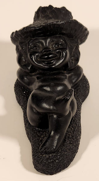 Vintage Coco Joe's Hawaii #222 Menehune Pi-Nui or The Sleepy One Laying 5 1/4" Long Carved Lava Rock Figurine