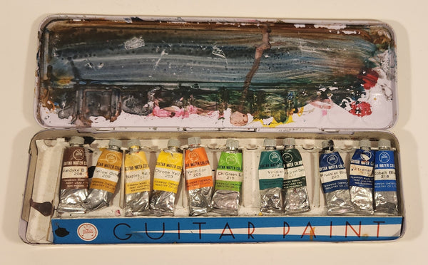 Vintage Guitar Paint Opaque Water Colour Tin Metal Container & Paint Made in Japan