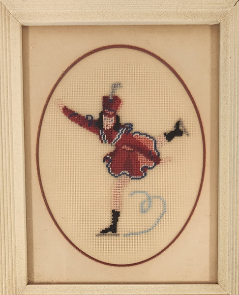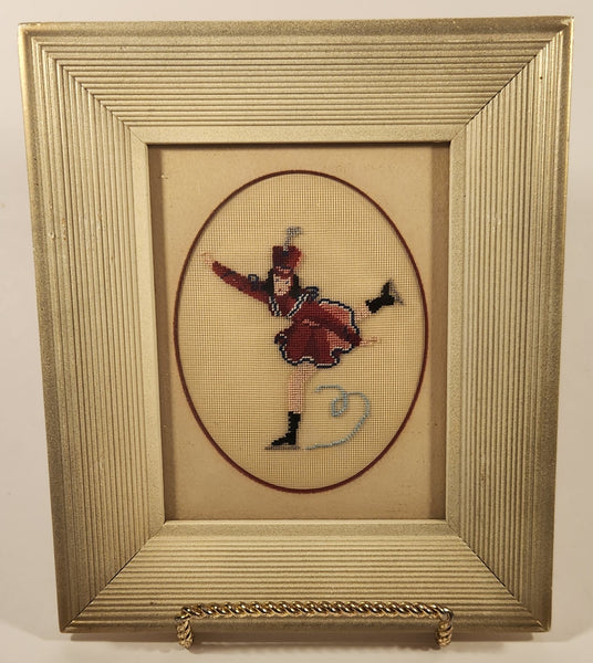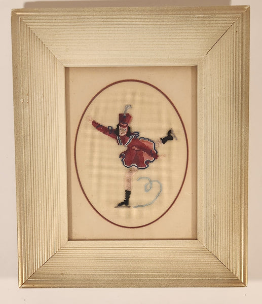 Vintage Ice Skater in Red Dress 6 3/4" x 8" Framed Embroidered Needle Point Picture