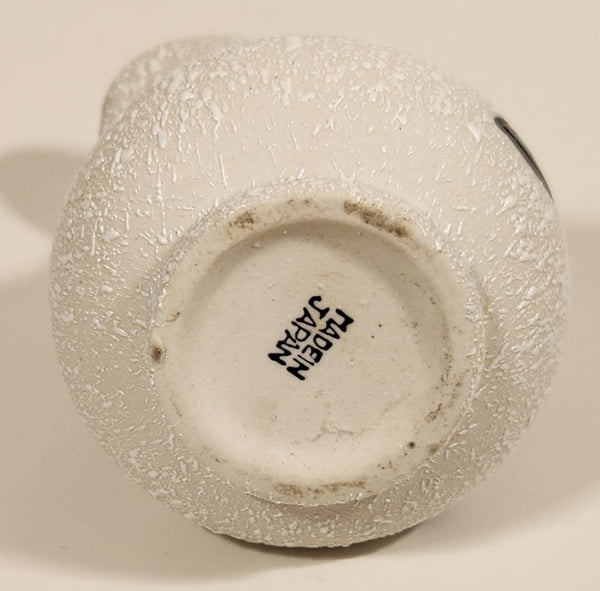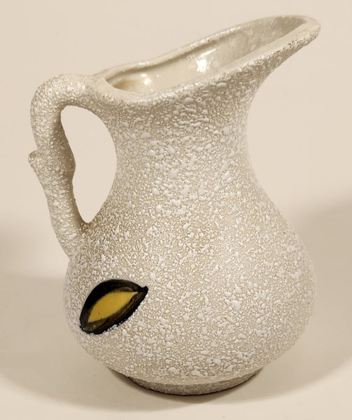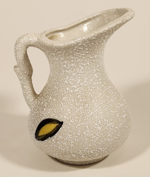 Vintage Mid Century Blue and Yellow Accents White Speckled 4" Vase Pitcher Jug