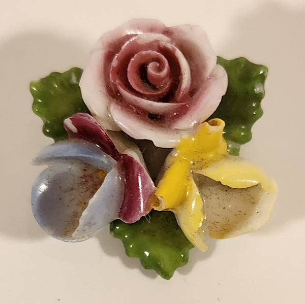 Vintage Crown Staffordshire Porcelain Floral Flower Bouquet Brooch Pin