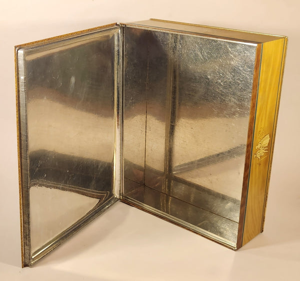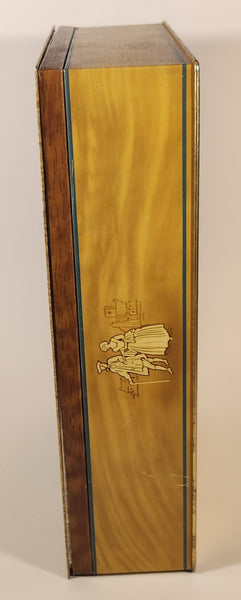 Vintage Victorian Man with Glass of Red Wine and Woman in Blue Dress on Staircase Tin Metal Container
